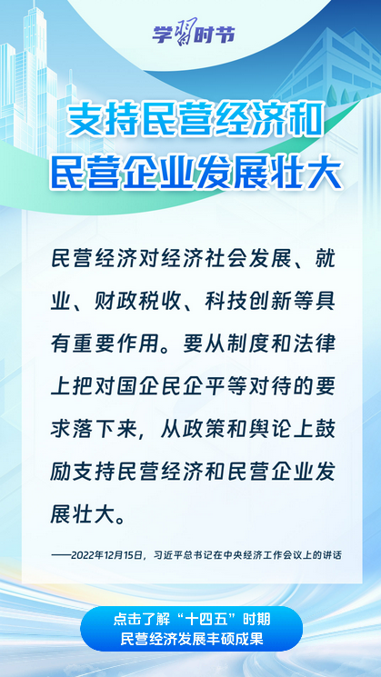 “十四五”时期,广大民营企业和民营企业家笃定信心、乘势而上,为中国经济高质量发展注入了蓬勃生机与强劲动能。通过一组海报,共同学习习近平总书记关于民营经济发展的重要论述,回顾“十四五”时期我国民营经济破浪前行、活力迸发的生动实践与丰硕成果。