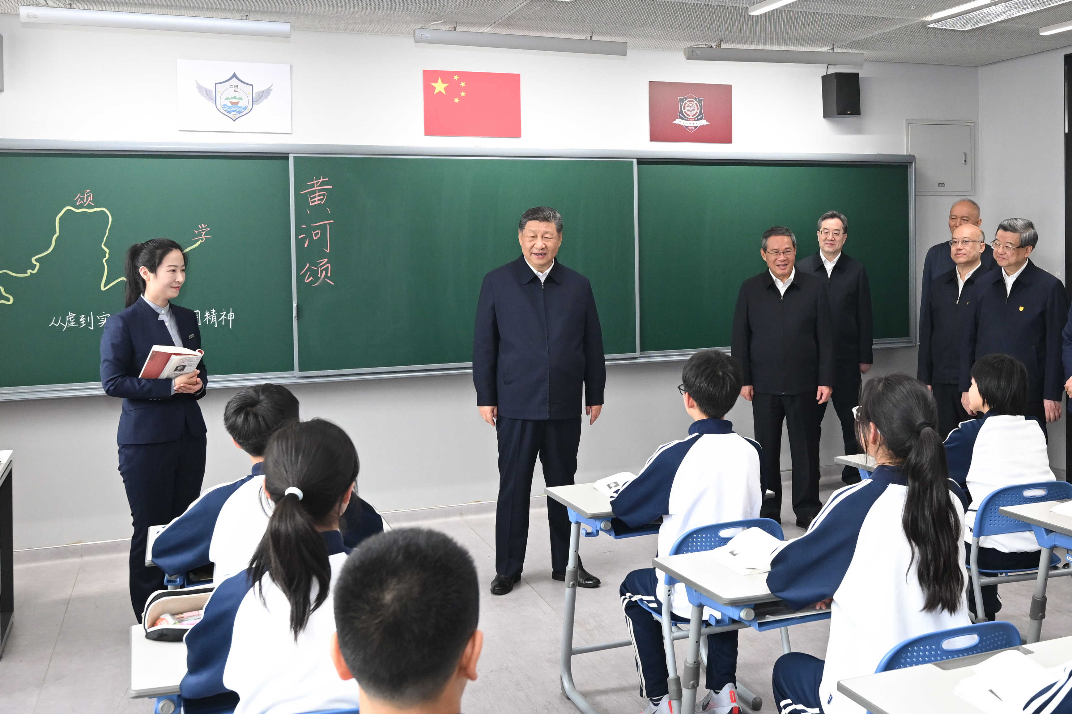 “你们都是随父母搬迁过来的吗?”“戴眼镜的有几个?”“体育锻炼的时间有保障吗?”总书记关心地问,孩子们雀跃地答,教室里暖意融融。
