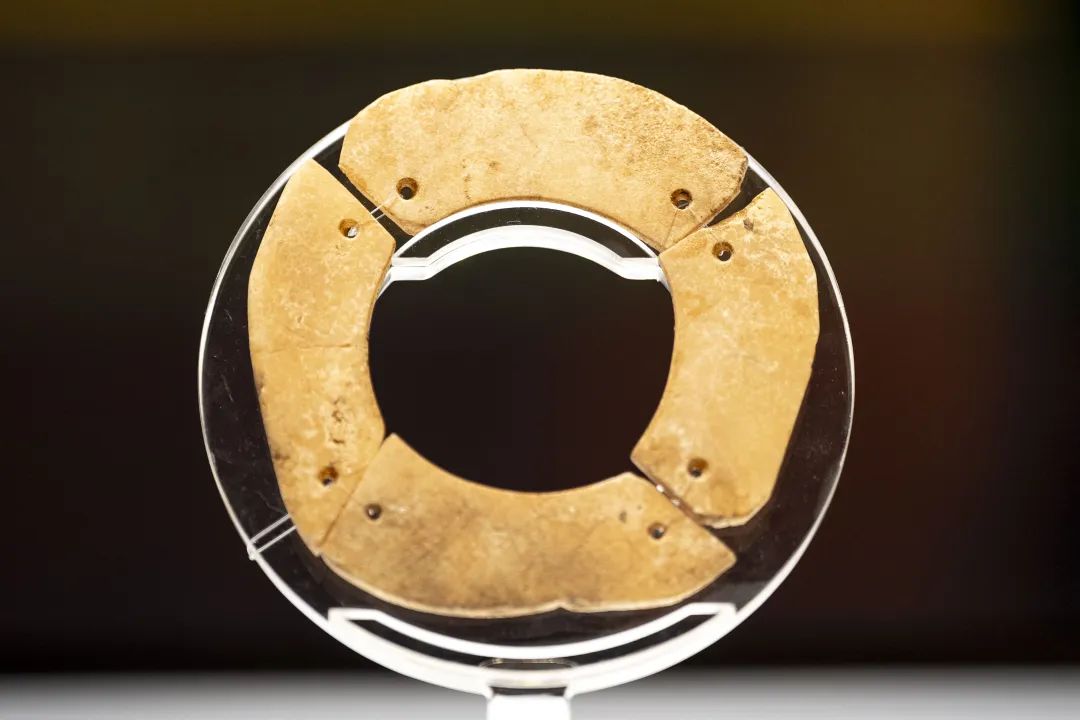 这也是文博爱好者的盛宴。大众期待的彩绘龙盘,以及从未公开展示的圭尺等闪亮登场。多璜联璧、铜蟾蜍片饰等230件(套)珍贵文物集中亮相。