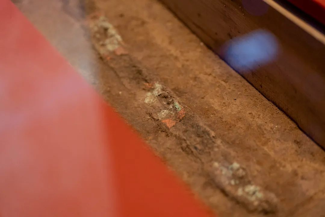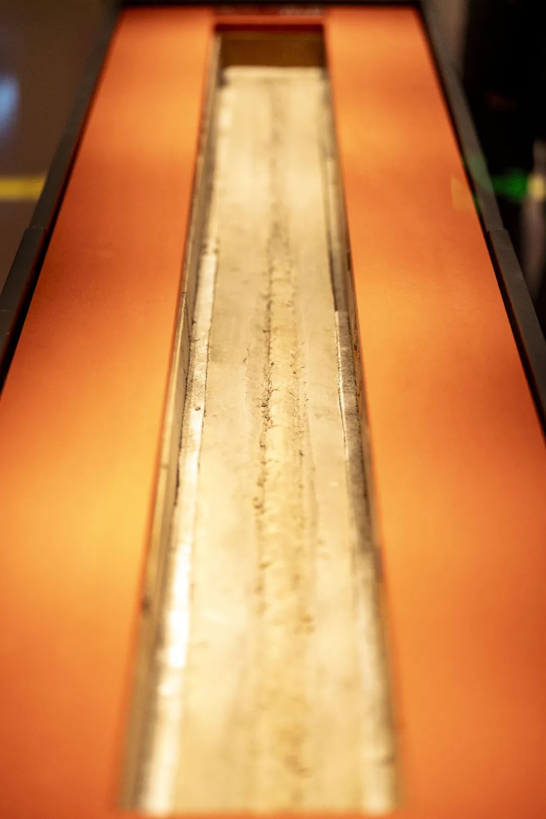 展厅里,陶寺遗址的核心文物圭尺首次公开亮相,这是一件黑、绿、红三色相间的漆木杆。