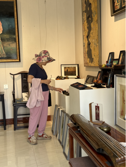 游客在梅艺漆坊工作室参观。新华网王梦佳摄