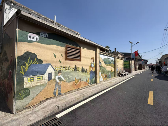 沿着刘家堡村的街道行走,一幅幅彩绘装点着村民院外墙、沿路建筑物、道路拐角处,原本斑驳的围墙化身为“会说话”的文化墙,讲述着村子的变化。新华网 王梦佳摄
