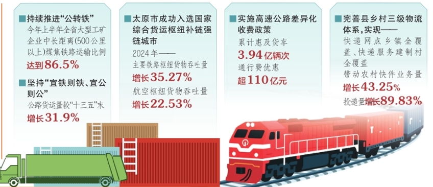 “不沿边、不靠海”的山西,如何通过交通不断拓展对外开放的广度与深度?设立30个内陆港,形成“晋商冀港”“津海晋门”“晋鲁走廊”等精品物流品牌,常态化运行公铁海多式联运线路10条,铁路货运量占比居全国第1位。打通山西至蒙俄国际道路运输线路,开通太原至芝加哥、阿拉木图全货机国际货运航线,常态化开行中欧班列26条,助力“山西制造”与国际货物双向循环。完善县乡村三级物流体系,实现快递网点乡镇全覆盖、快递服务建制村全覆盖,“农产品进城、消费品下乡”的双向流通渠道更加通畅。