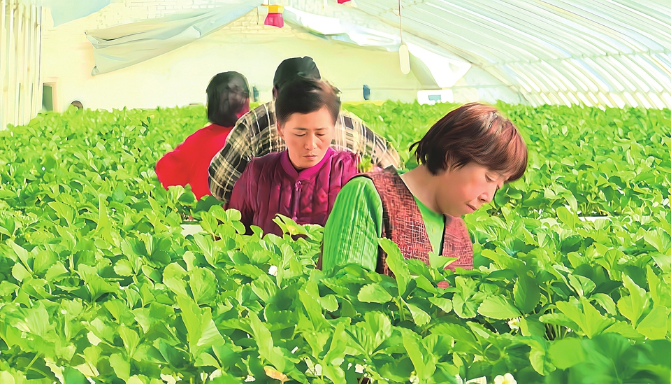 盂县南娄镇坡头村的果蔬大棚内,工作人员正忙着为草莓植株修剪枝叶、梳理藤蔓。本报记者刘迎春摄