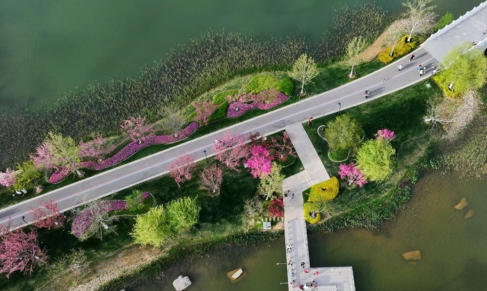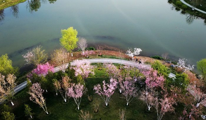 春日的龙马湖,正晕染出一幅层次丰富的生态春景图。