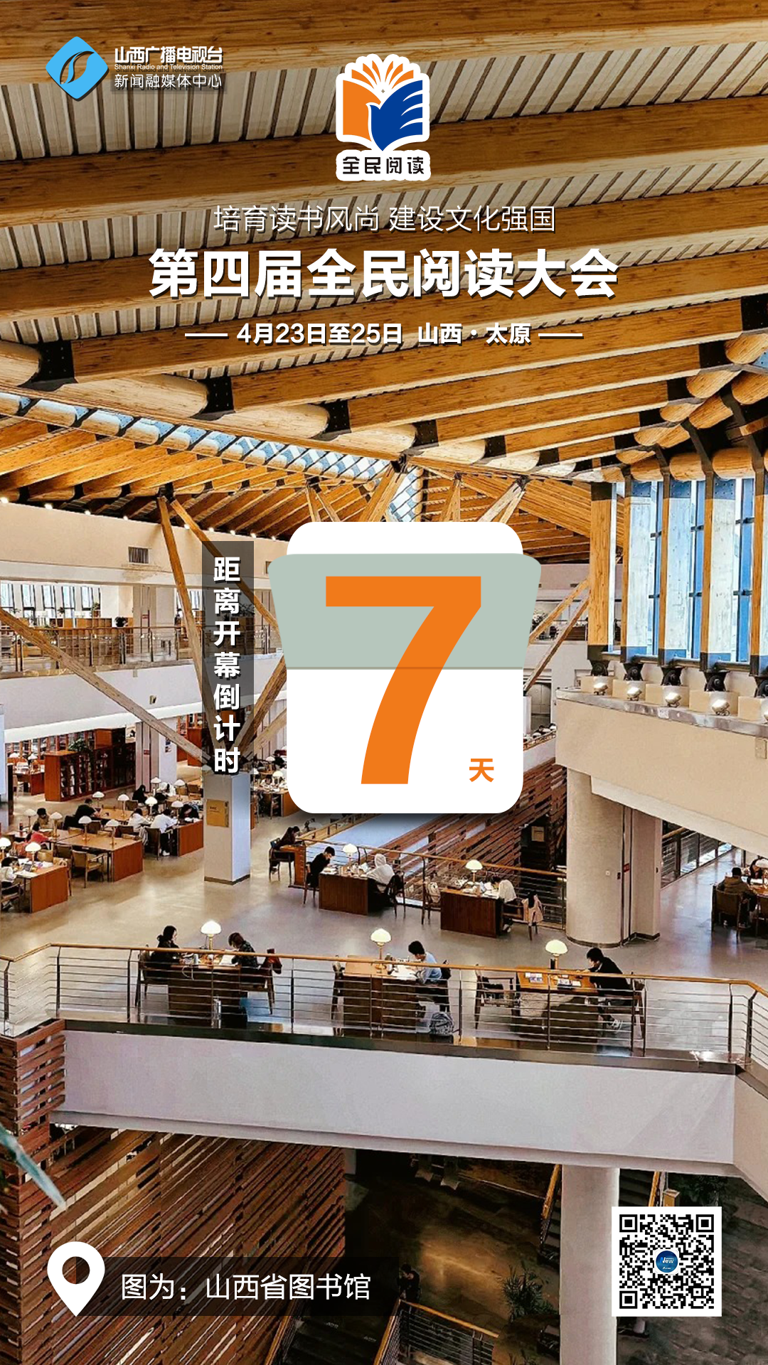第四届全民阅读大会将于4月23日至25日在山西太原举办。大会主题为“培育读书风尚 建设文化强国”,将聚焦推动新时代全民阅读,围绕全民阅读工作重点任务、关键环节举办论坛、阅读推广等多项活动,探讨深化全民阅读的思路举措,调动社会各方面积极参与全民阅读,进一步营造全社会爱读书、读好书、善读书的浓厚氛围。