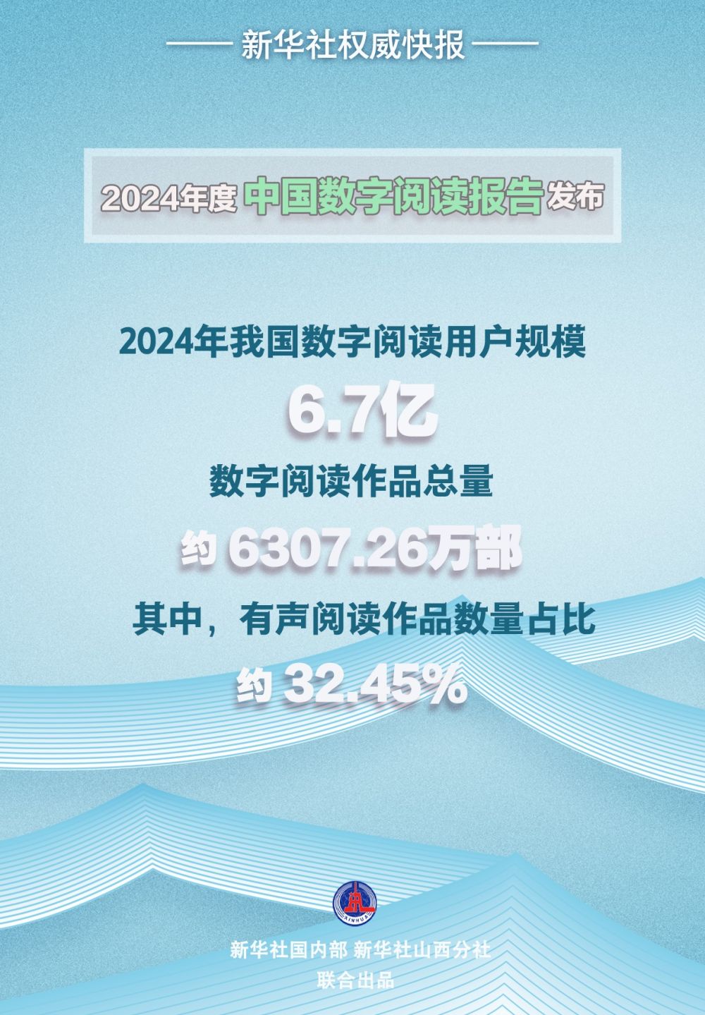 4月23日是世界读书日,在山西太原举办的第四届全民阅读大会上,最新发布的《2024年度中国数字阅读报告》显示,2024年我国数字阅读市场总体营收规模为661.41亿元,用户规模已达6.7亿。
