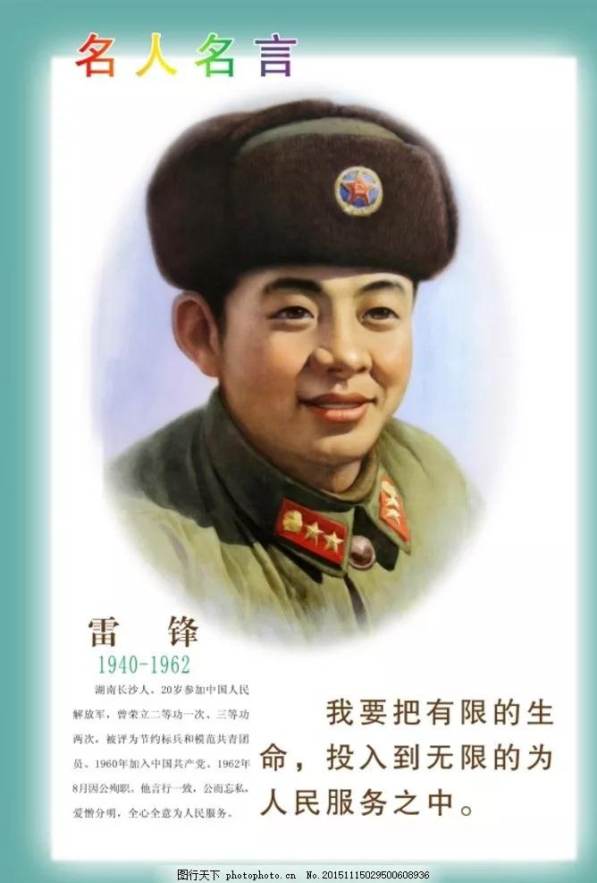 我们要学习雷锋热爱党、热爱祖国,做一个忠诚于党,忠于祖国的人;学习雷锋服务人民,助人为乐,做一个奉献社会、提升自我的人;学习雷锋干一行爱一行、专一行精一行,做一个刻苦钻研、爱岗敬业的人;学习雷锋锐意进取、自强不息,做一个与时俱进、团结奋进的人;学习雷锋艰苦奋斗、勤俭节约,做一个艰苦朴素、道德高尚的人。