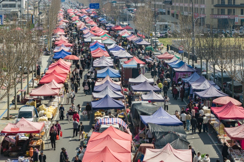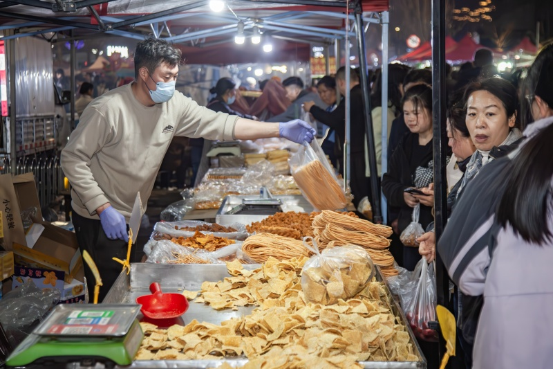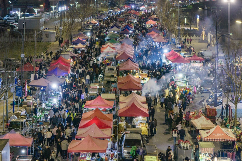 近日,山西省晋城市城区西滩会如期开集,景德桥畔人头攒动。对晋城人而言,西滩会不只是一场传统庙会,更是代代相传的乡土印记。 图为夜晚的西滩会人头攒动。