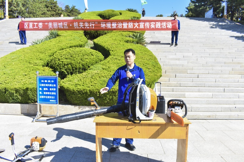 活动现场,消防队员依次演示风力灭火机、油锯等设备的正确使用方法,围绕初期火情扑救、紧急避险等知识进行详细讲解,并发放宣传手册。随后,全体人员沿白马寺山登山步道,使用垃圾夹、环保袋等工具,对步道两侧及绿化带中的塑料瓶、纸屑等废弃物进行集中清理。