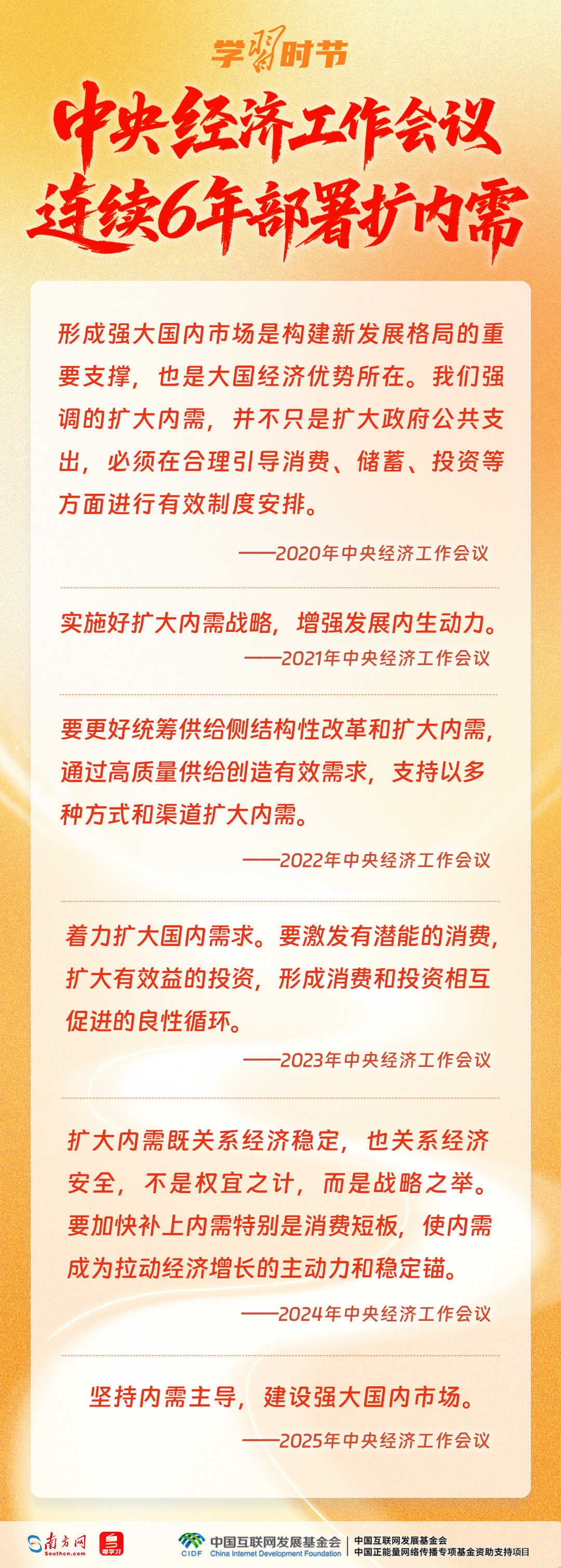 2020年以来,中央经济工作会议连续6年对扩大内需进行部署。