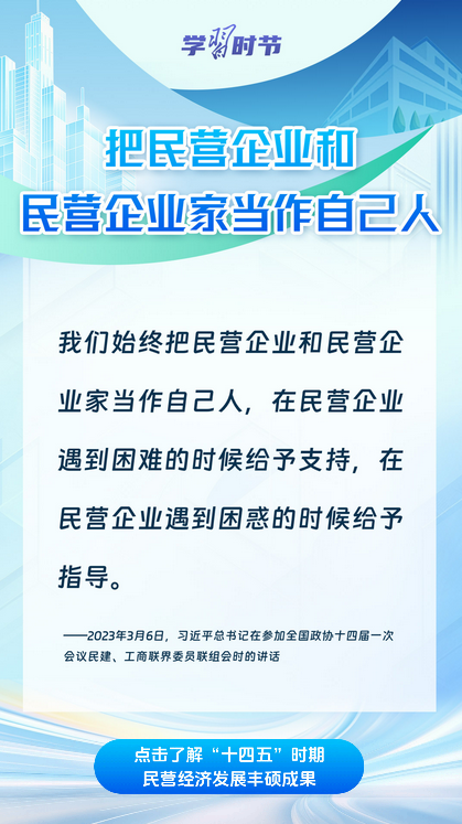“十四五”时期,广大民营企业和民营企业家笃定信心、乘势而上,为中国经济高质量发展注入了蓬勃生机与强劲动能。通过一组海报,共同学习习近平总书记关于民营经济发展的重要论述,回顾“十四五”时期我国民营经济破浪前行、活力迸发的生动实践与丰硕成果。