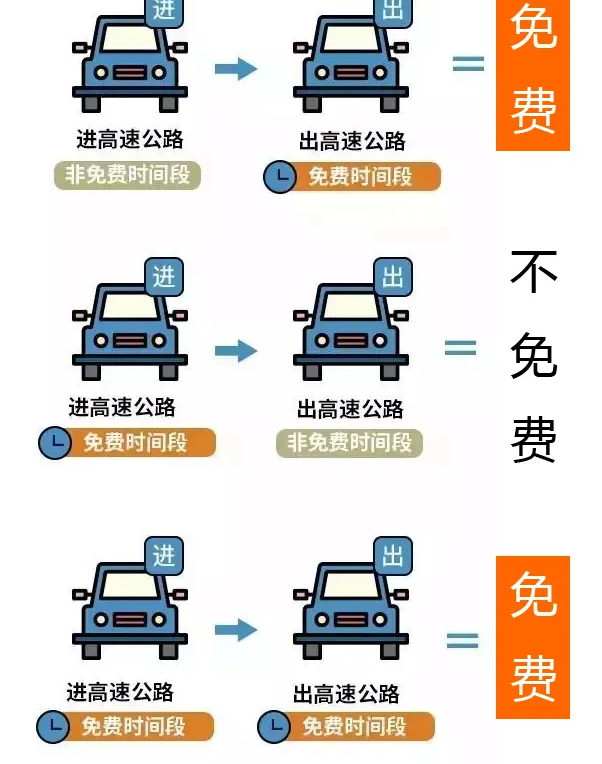 温馨提示:高速公路免收通行费时间以车辆驶离高速公路出口收费车道的时间为准。