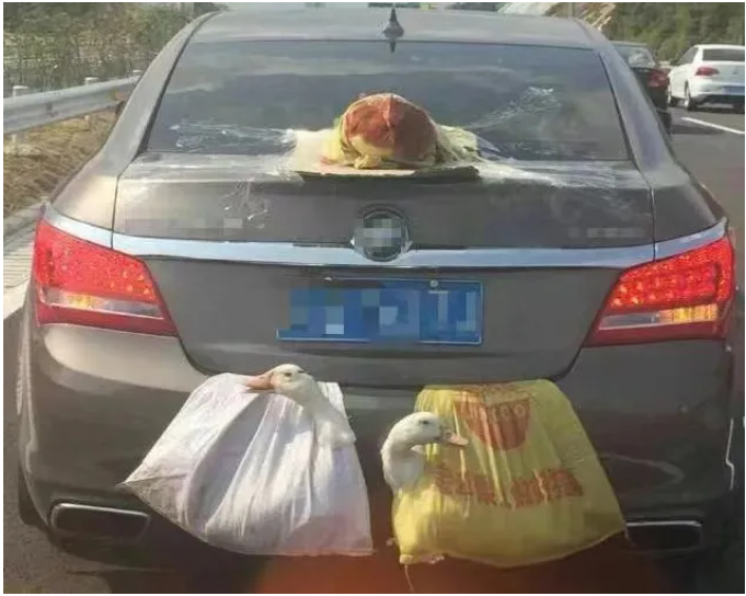 他们有的家禽“外挂”在车体外,被网友称为“涡轮增鸭”“发动鸡”;