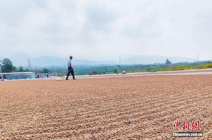 在晾晒场,成片的酸枣铺满地面,村民正翻动酸枣,确保每一颗酸枣都能被均匀晒干。“为了保证酸枣仁药效,从鲜酸枣的收购,到晾晒、洗核,再到破壳取仁,每个环节都需要严格把握。”合作社负责人郭亮告诉记者,其采用种植、收购、加工、销售一体模式,主要进行柴胡、党参、酸枣等中药材收购及初加工。