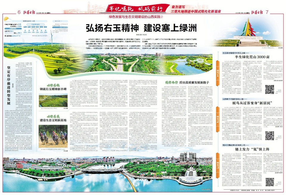 作为右玉精神的发祥地,朔州市大力学习弘扬右玉精神,始终牢牢把握绿色发展的正确方向,始终把保护生态环境作为高质量发展的根本立足点,持续推动生态立市战略实施,探索资源型地区生态文明建设的新路子。朔州市生态环境局统计数据显示,2025年1月—8月,朔州市环境空气质量综合指数为3.28,与去年同比下降17.0%,全省排名第二;优良天数213天,同比增加20天。劣V类水体、黑臭水体全面剿除,国考断面全部为优良水质,实现了“一江清流向京冀”。矿区土地复垦率、植被覆盖率分别达到60%和90%以上。市、县建成区全部实现清洁取暖,农村清洁取暖覆盖率达到100%。