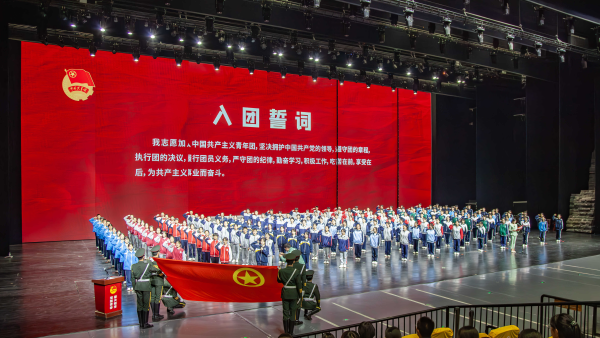 百年薪火,青春永续。《觉醒年代》的帷幕尚未落下,在“青年学子救国图强宣誓”高潮情节处,新时代的青春之歌已然奏响,现场接续进行了标准化入团仪式,依次开展宣读新团员名单,为新团员佩戴团徽,全体新团员面向团旗庄严宣誓,团员代表发言,全体齐唱中国共产主义青年团团歌等环节,充分展现了新时代青年坚定的理想信念与昂扬的精神风貌,共有592名青年光荣加入中国共产主义青年团。