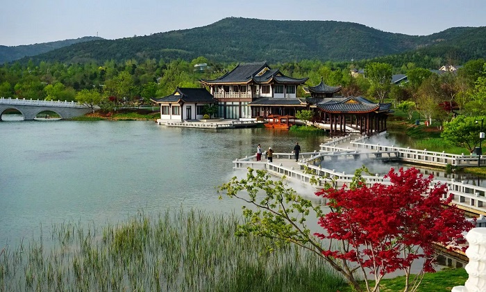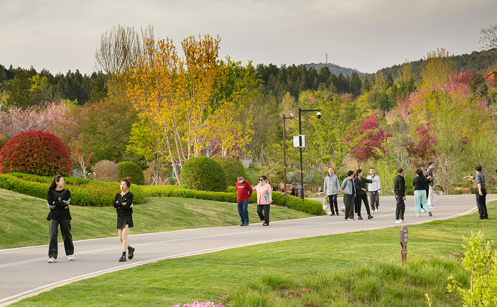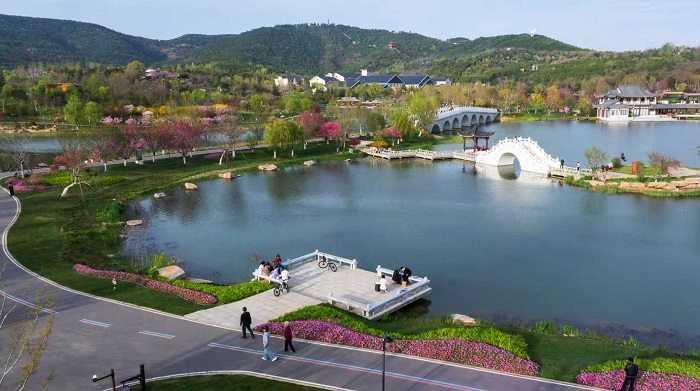 澄澈的湖水如碧玉般铺展,将岸边的桃红柳绿尽收其中。市民漫步其中,或拍照,或驻足赏景,与这自然景致融为一体;远处的城市楼宇在春色中若隐若现,与眼前的湖光山色形成奇妙的城景交融之态,尽显晋城“生态之城”的独特魅力。(张少毅 摄)