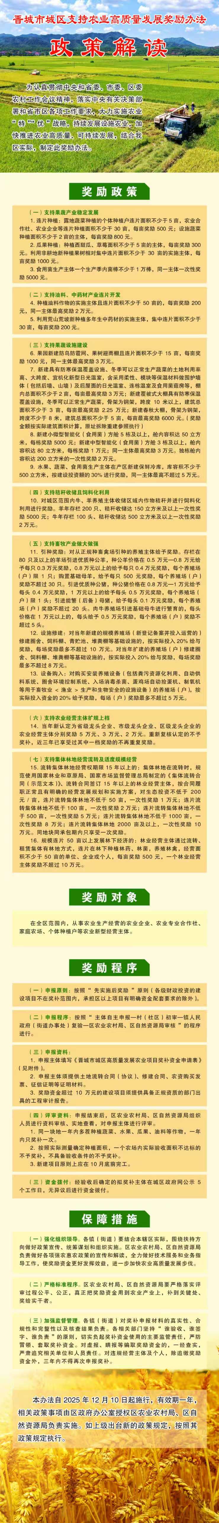 【图解】晋城市城区支持农业高质量发展奖励办法政策解读