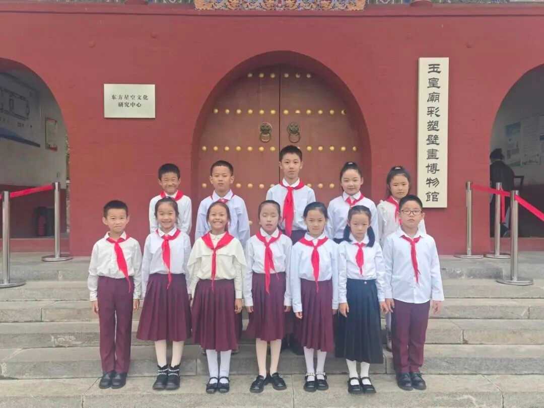 “大家好,欢迎来到玉皇庙……”10月1日,孩子们各自领着一群游客穿行在景区内,用稚嫩的声音为游客导览。从整体布局到主要建筑,从二十八星宿到道教文化,孩子们娓娓道来,将玉皇庙的历史价值和艺术价值生动地展现出来,吸引了每一位游客驻足聆听。