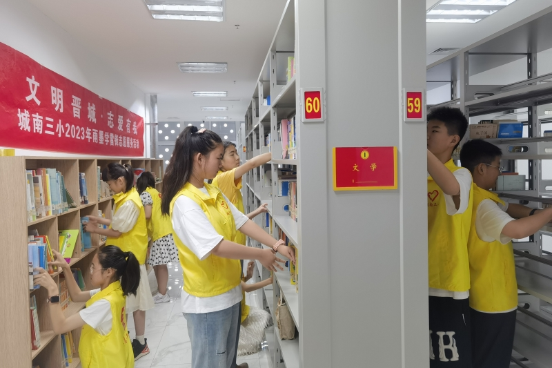 近日,晋城市城区南街第三小学校前往城区图书馆开展“文明晋城·志爱有我”2023年雨墨学雷锋志愿服务活动。小志愿者们帮助图书管理员整理了一部分书籍,还参观了借阅室、报刊阅览室、儿童阅览室,近距离感受盲人书籍和古籍藏书。通过本次活动的开展,同学们开阔了眼界、增强了对图书馆的认识与了解,并体验到图书馆工作人员的辛苦,更懂得珍惜他人劳动成果,把爱心传递给周围的人。(卞娇娇)