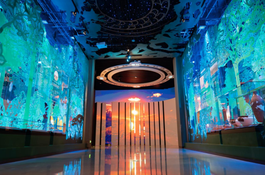 图为陶寺遗址博物馆空气悬浮屏互动装置。