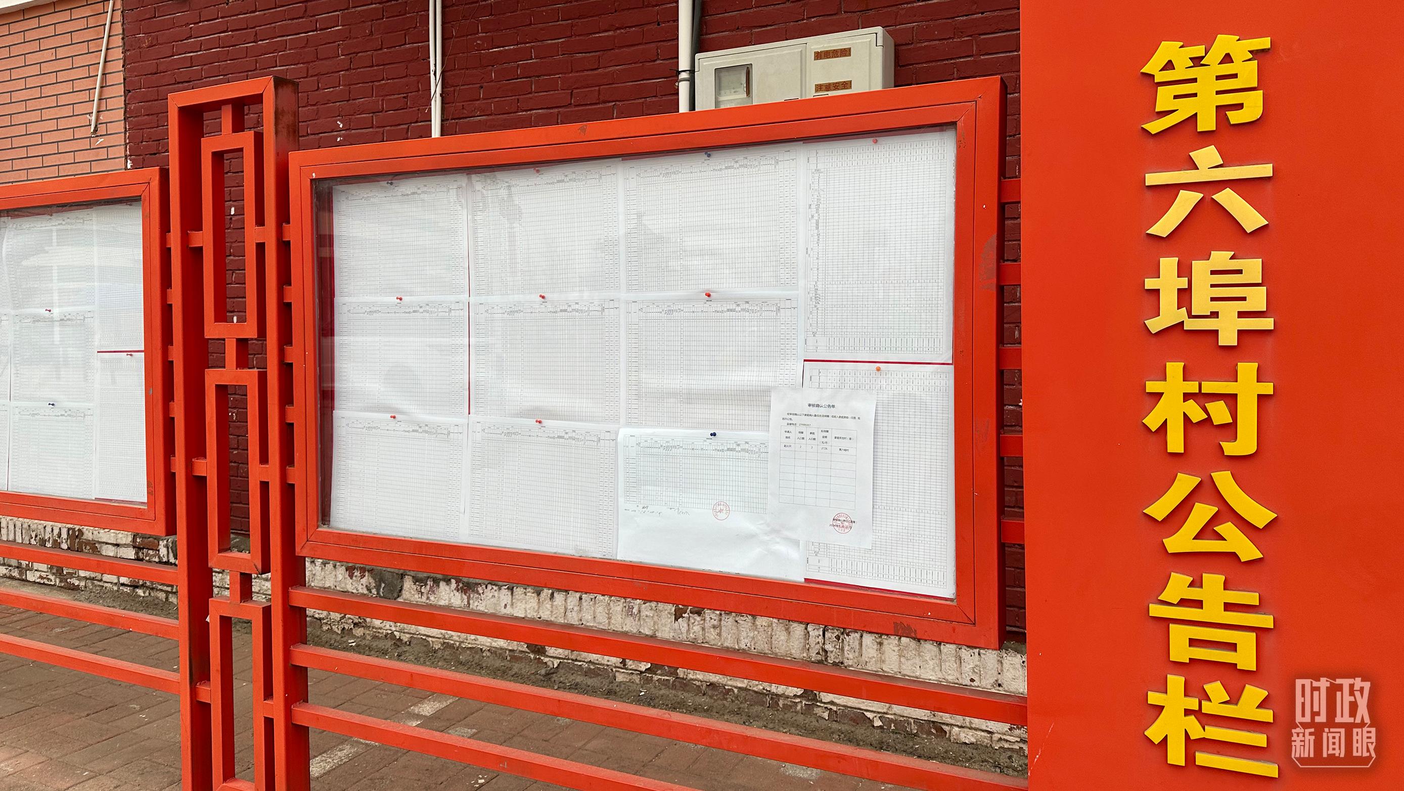 △第六埠村公告栏里张贴着“天津市2023年蓄滞洪区农作物、经济林补偿标准表”等。(总台央视记者覃思拍摄)