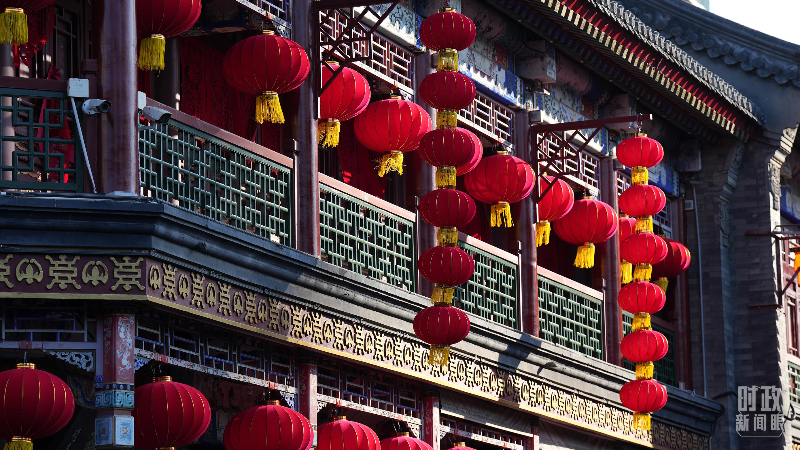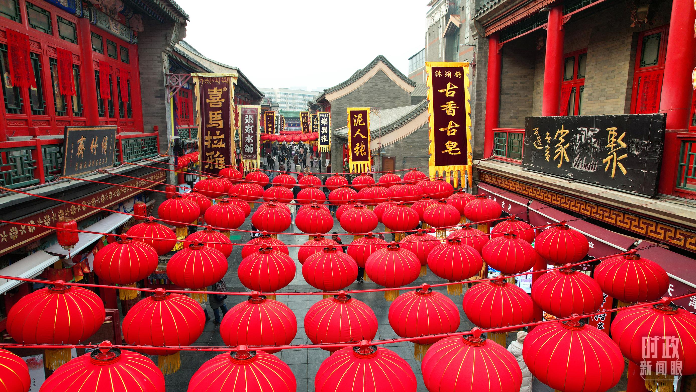 春节将近,天津古文化街挂满红红的灯笼,舞龙舞狮表演走上街头,中国味、天津味、古味、文化味、年味十足,前来采买的市民游人络绎不绝。