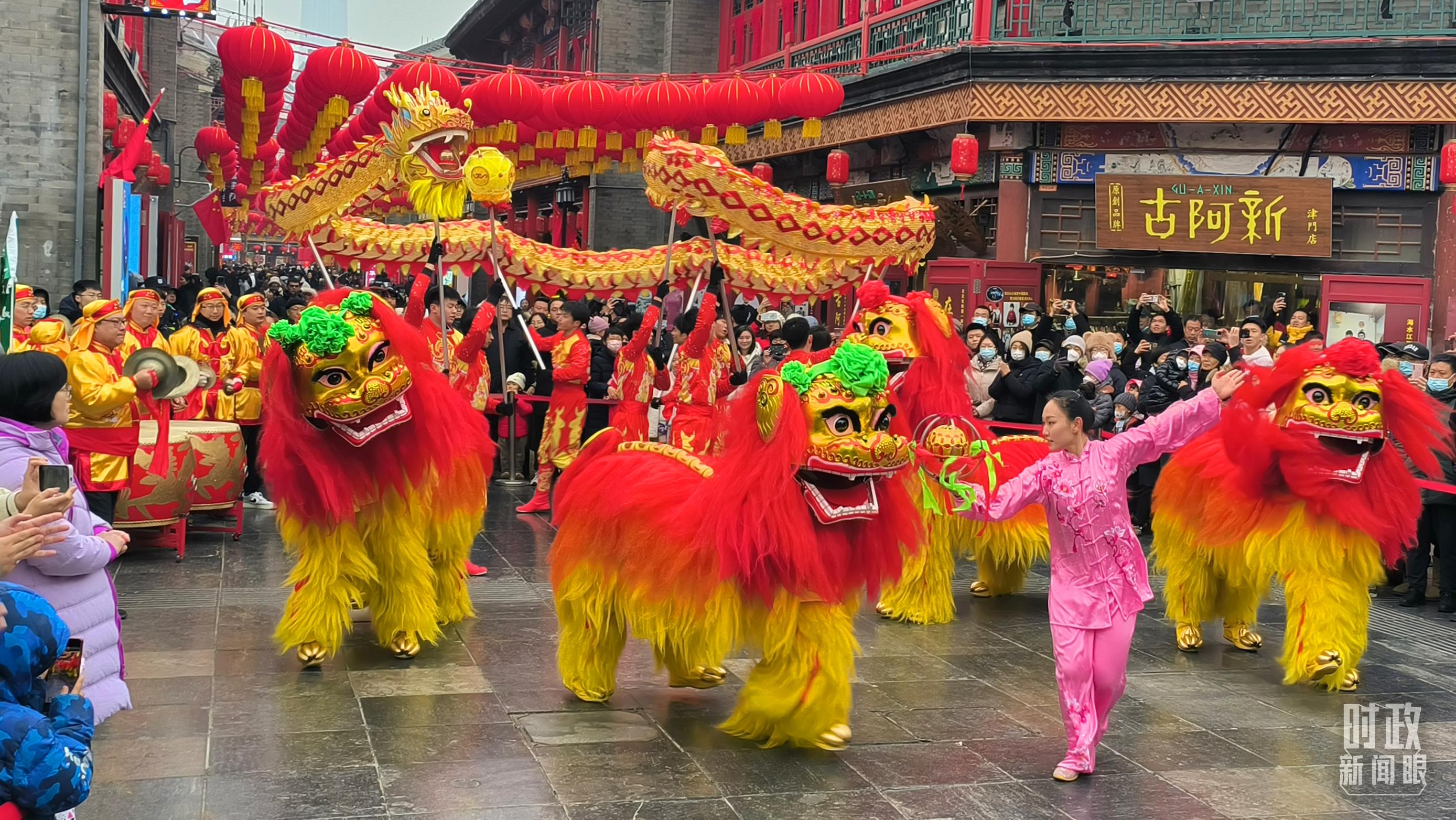 △天津古文化街上的舞龙舞狮表演。(总台记者孙文啸拍摄)