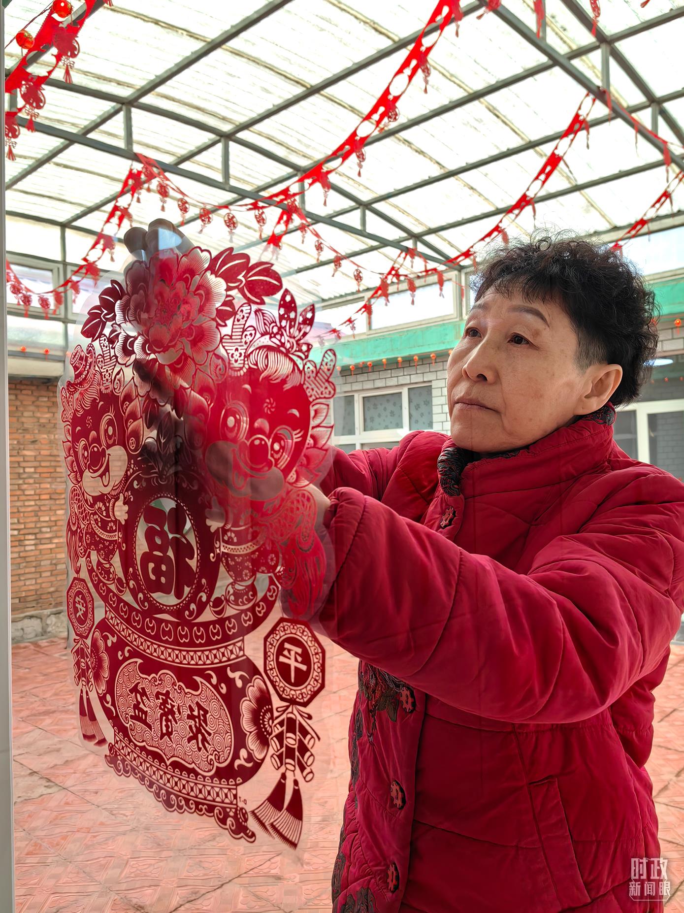 △第六埠村村民正在贴窗花。(总台央视记者段德文拍摄)