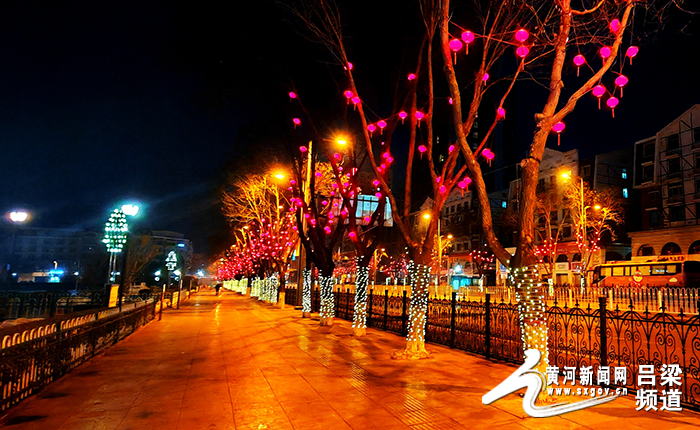 黄河新闻网吕梁讯(记者 张华) 在新春佳节来临之际,吕梁市区街道两旁挂起了灯笼、花球,喜庆的年味弥漫在城市的每一个角落。夜幕降临,华灯初上,走在城区道路上,霓虹闪烁,火树银花,给新春佳节增添了无尽美感和热烈气氛。