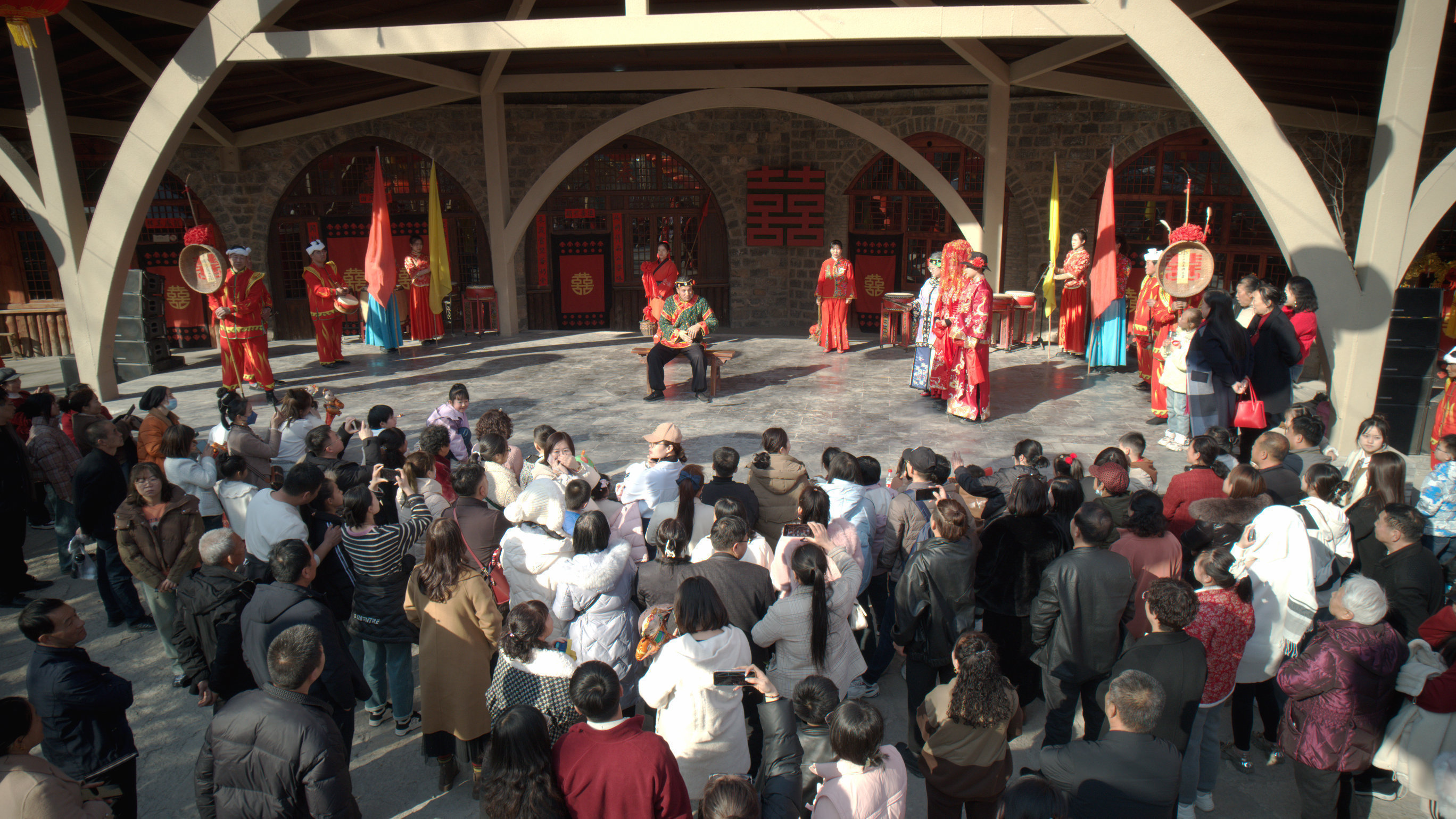 红火的灯笼、喜庆的中国节、鲜艳的“树挂”扮靓了塔尔坡古村,年味浓浓,喜气洋洋。喜庆唢呐,大红花轿,在“婚俗院”可近距离感受传统婚俗文化。“新郎”“新娘”换碗吃面、“婆婆”抱盐罐等婚俗情景表演,让人忍俊不禁、欢笑不断。“野鹊子喳,喳梅花,梅花坡哩人莅啦……”本土歌手原汁原味的乡宁民歌,博得阵阵掌声和喝彩。