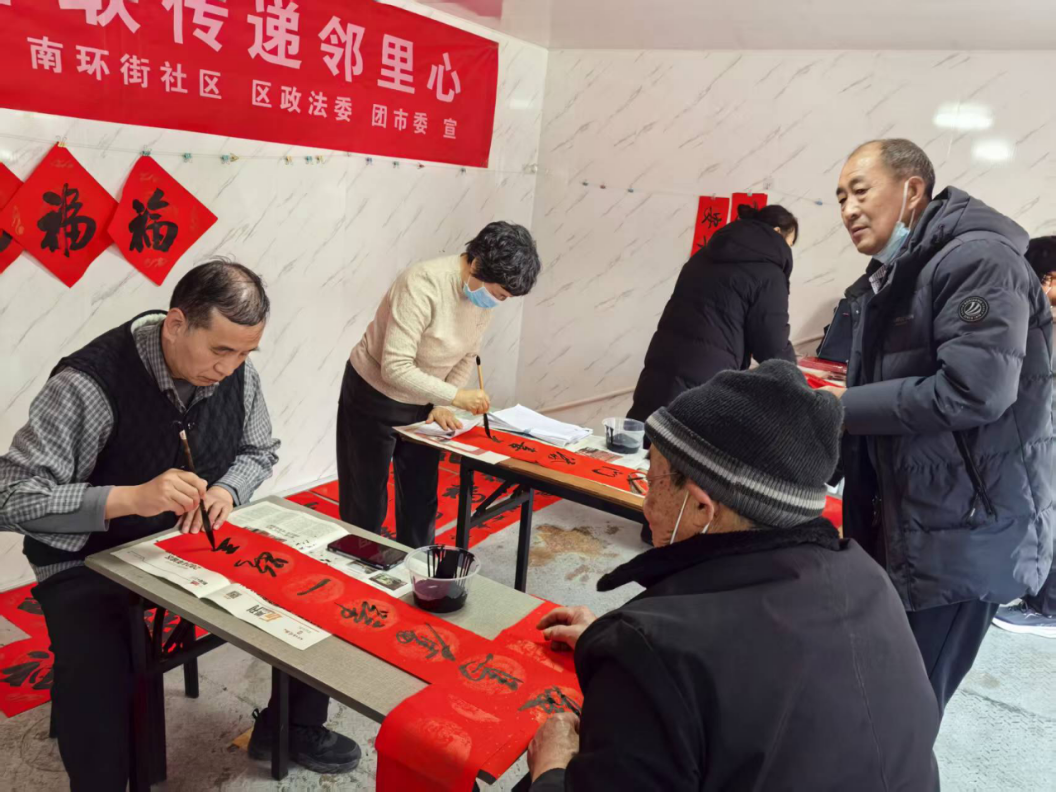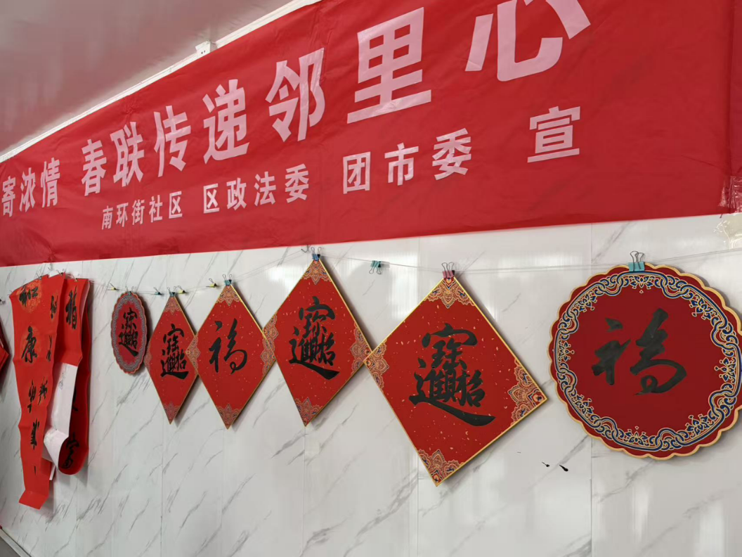 新春将至,年味渐浓。为弘扬传统文化,营造喜庆祥和的节日氛围,南环街社区组织开展了“写对联·送福字”主题活动,让居民在笔墨纸砚间感受传统年俗的魅力。