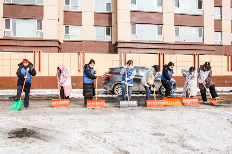 与此同时,前进路社区也全员上阵,党员志愿者带头深入巷道,重点清除人行道、台阶及拐角处的积冰浮雪。大家用铁锹破冰、扫帚清雪,确保每条小街小巷都畅通无阻。