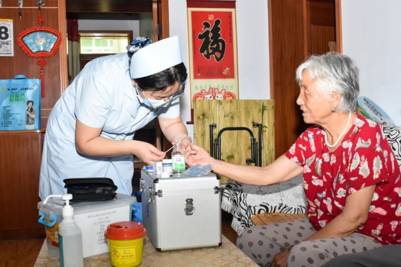 医护人员上门为老人测量血糖