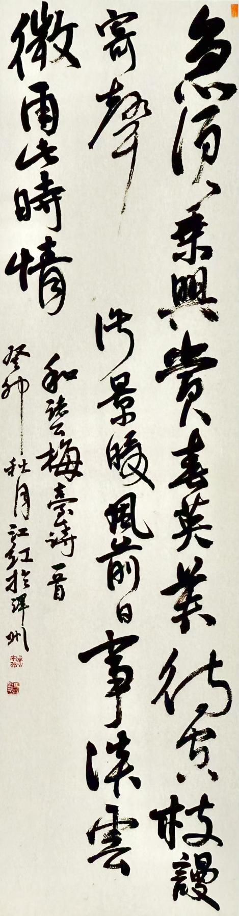 马江红,中国篆刻书法教育委员会委员,晋城市硬笔书法家协会副秘书长。此作品为马江红的草书作品《和诸公梅台》。